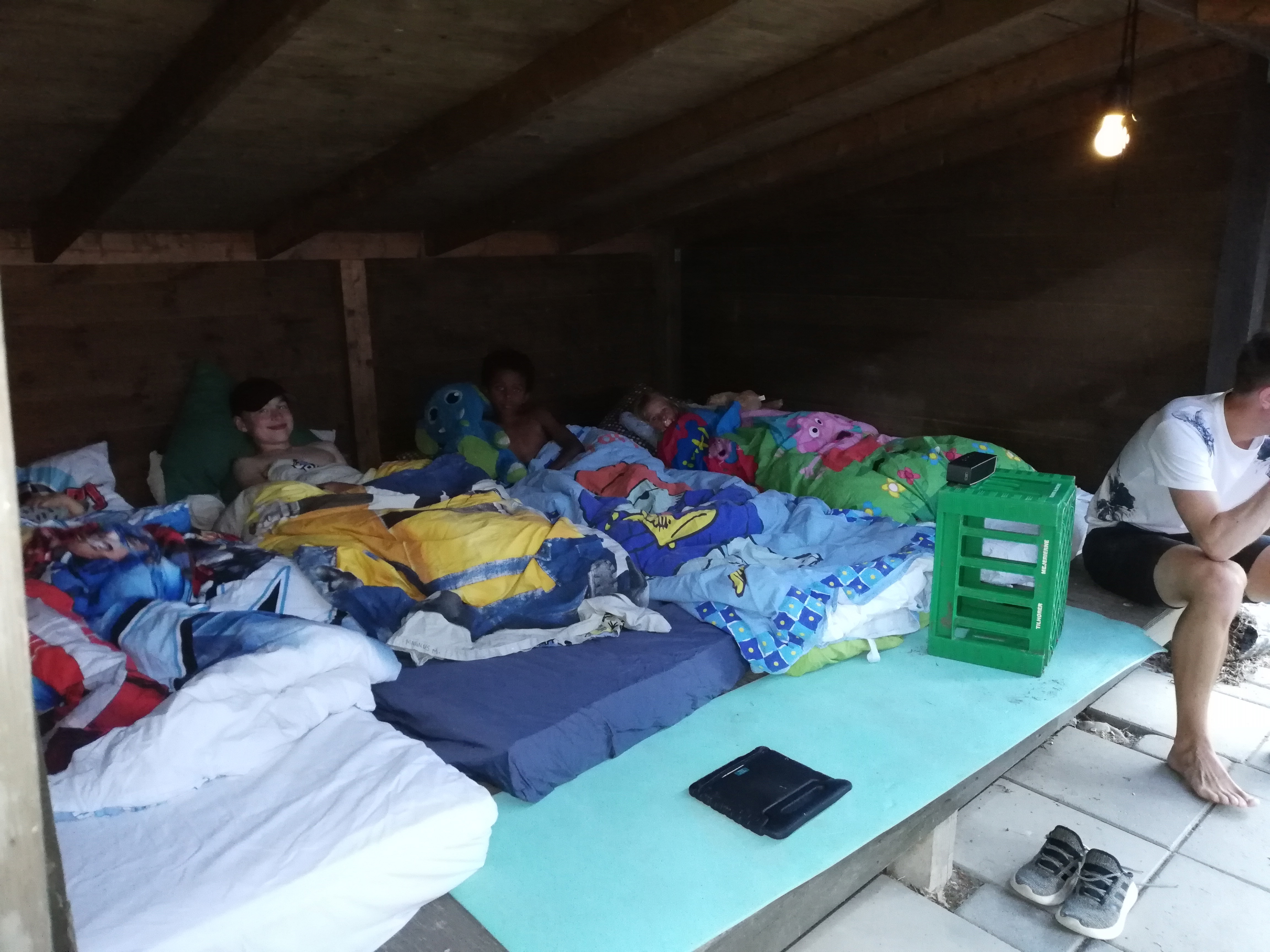 En lille hilsen her i sommervarmen. Vi har i denne weekend benyttet os af udendørs aktiviteter, der er blevet leget i haven, sovet i shelter og været på stranden at bade.